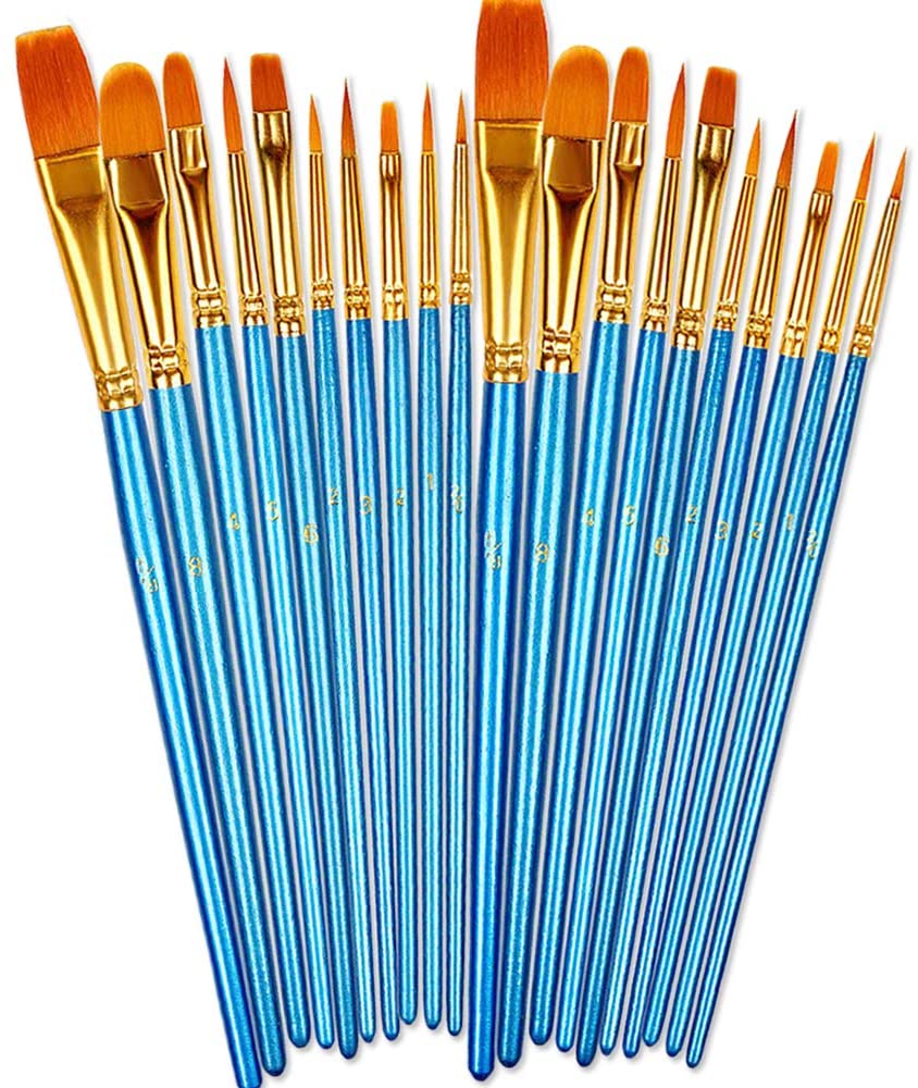 BOSOBO Paint Brushes Set, 2 Pack 20 Pcs Round Pointed Tip Paintbrushes Nylon Hair Artist Acrylic Paint Brushes for Acrylic Oil Watercolor, Face Nail Art